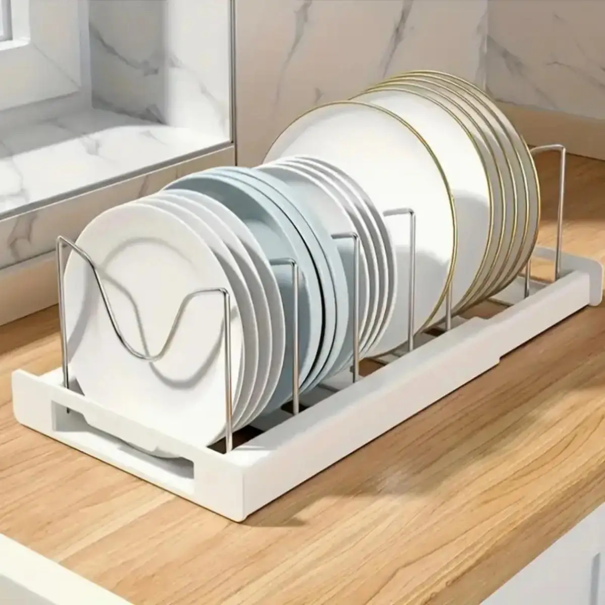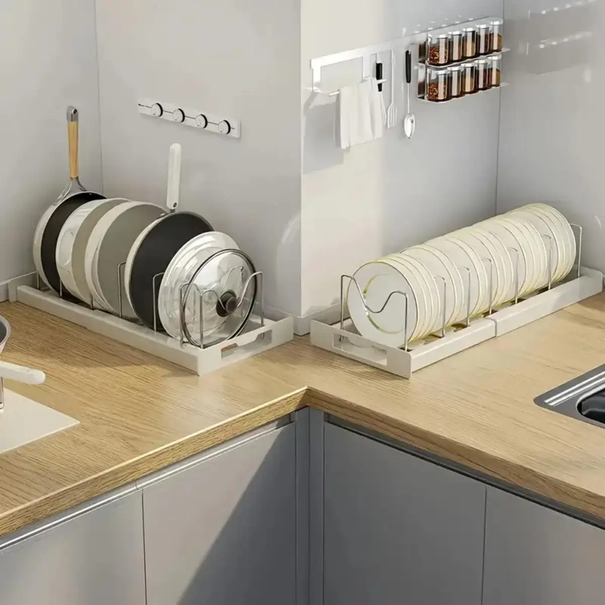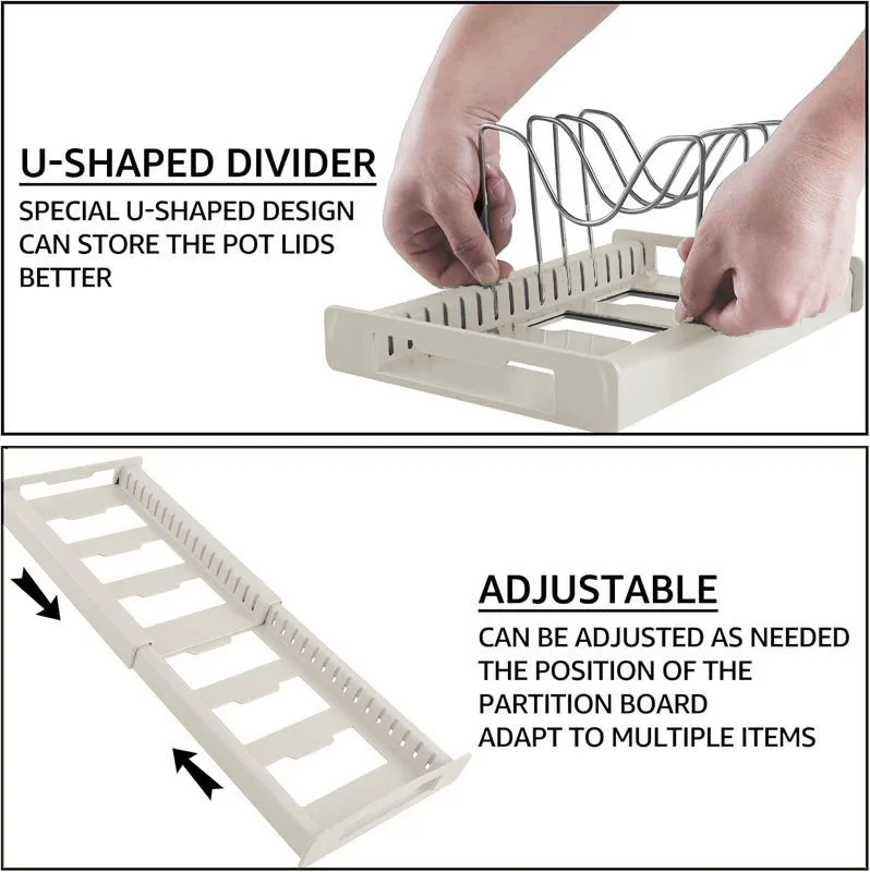Maximize your kitchen storage with this expandable pot and pan organizer designed for cabinets and countertops. Featuring seven adjustable dividers, it allows you to customize spacing to fit lids, pans, and food container covers of various sizes. The expandable design adapts to your storage space, making it ideal for small or large kitchens. Built from durable materials, it provides stable support for everyday use. Keeps cookware neatly separated and easy to access, reducing clutter and saving time while cooking. The open design allows for quick placement and removal of items. Perfect for organizing pot lids, frying pans, baking trays, and more. Easy to assemble with no complicated setup required. Compact yet highly functional, it fits neatly inside cabinets or on shelves. A practical solution for keeping your kitchen organized and efficient.